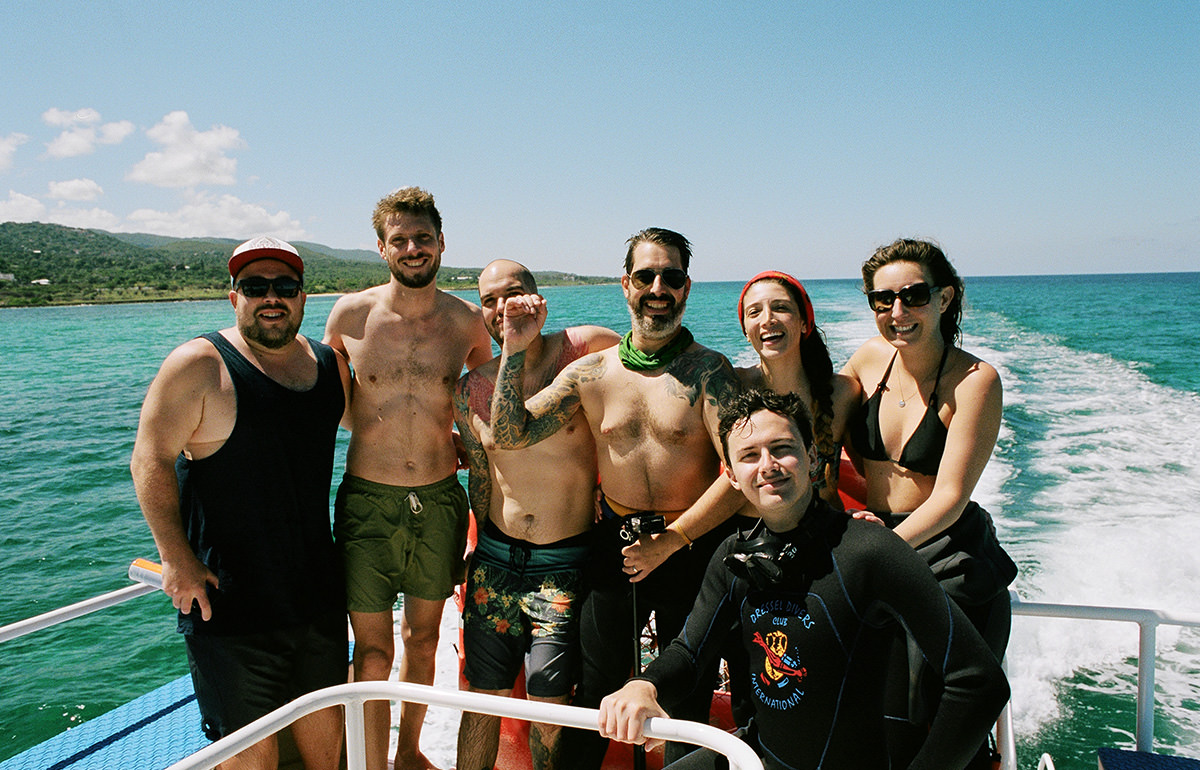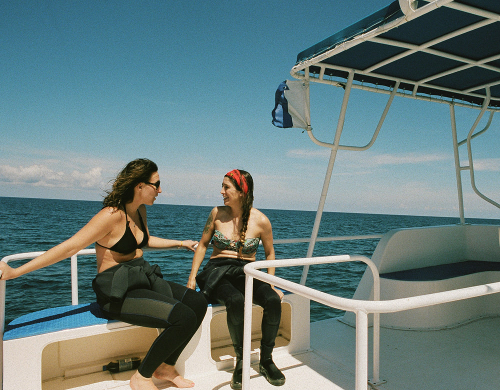 Off the coast, our boat pulls away from the shore under a full moon. A night dive has been planned. You can feel the anxiety, but oh, how lucky we are to live this experience together. We dive in and quickly descend to the bottom, slipping into darkness.