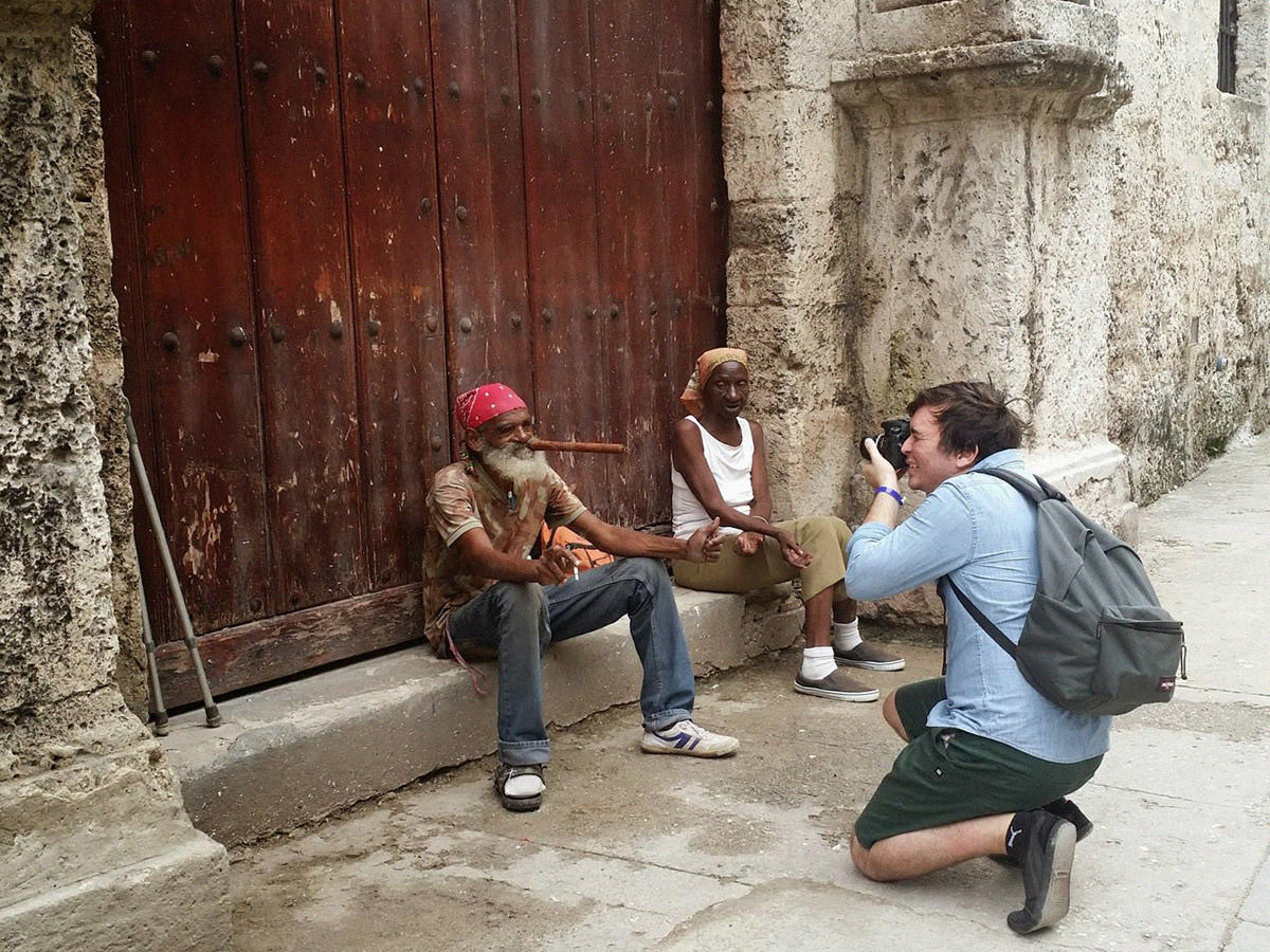 On the road to Havana, aboard a flawless ‘57 Chevy, our local guide tells us about life in Cuba, the political climate, and Fidel. Through the window, we admire the region’s fabulous landscapes. On the way, we stop a few minutes for a little coconut rum, to the sound of mariachis who offer us a morning performance under a tent.