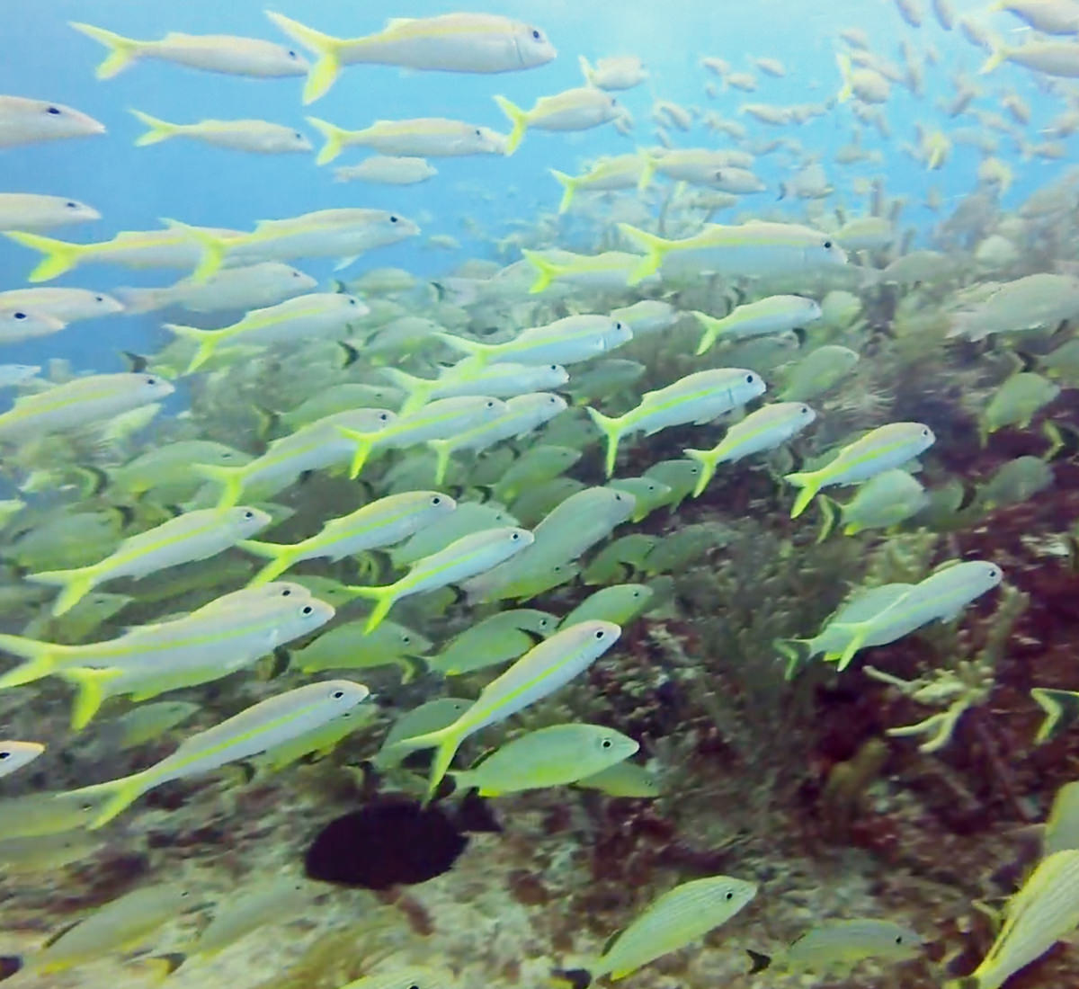 The Varadero region offers diving enthusiasts a multitude of thrills. During one of our dives, the team had the opportunity to enter a huge ship’s wreck, often a refuge for aquatic life. An enormous school of silvery fish takes refuge there and we run into a small nurse shark napping at the bottom of the metal hold. From the outside the wreck is of impressive size.
