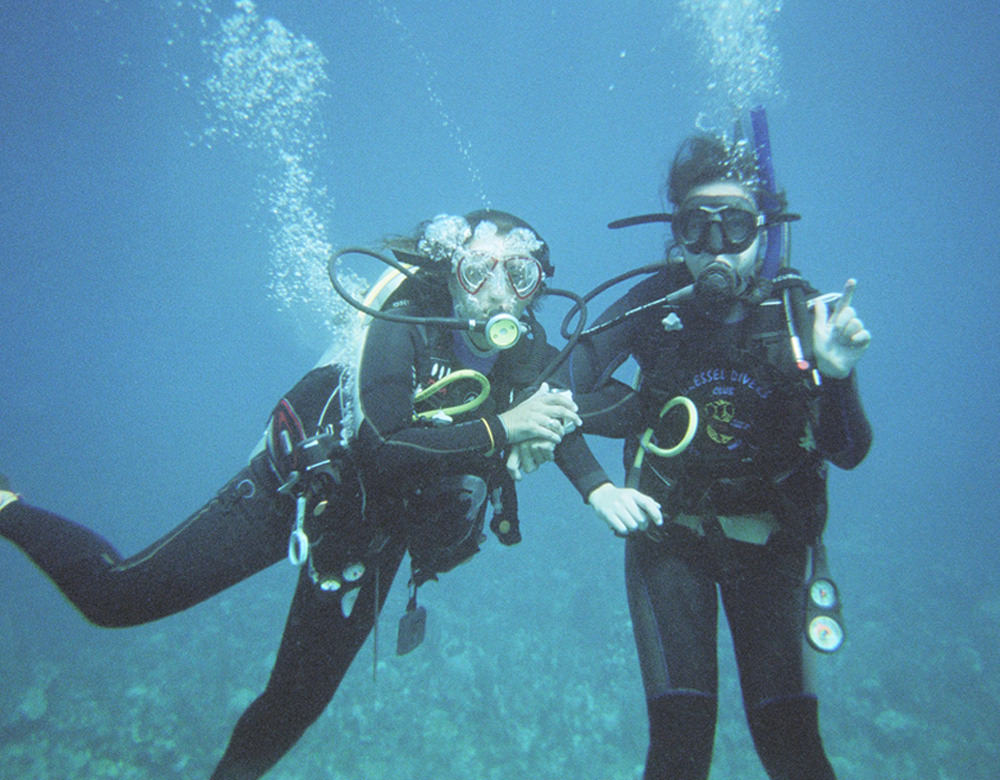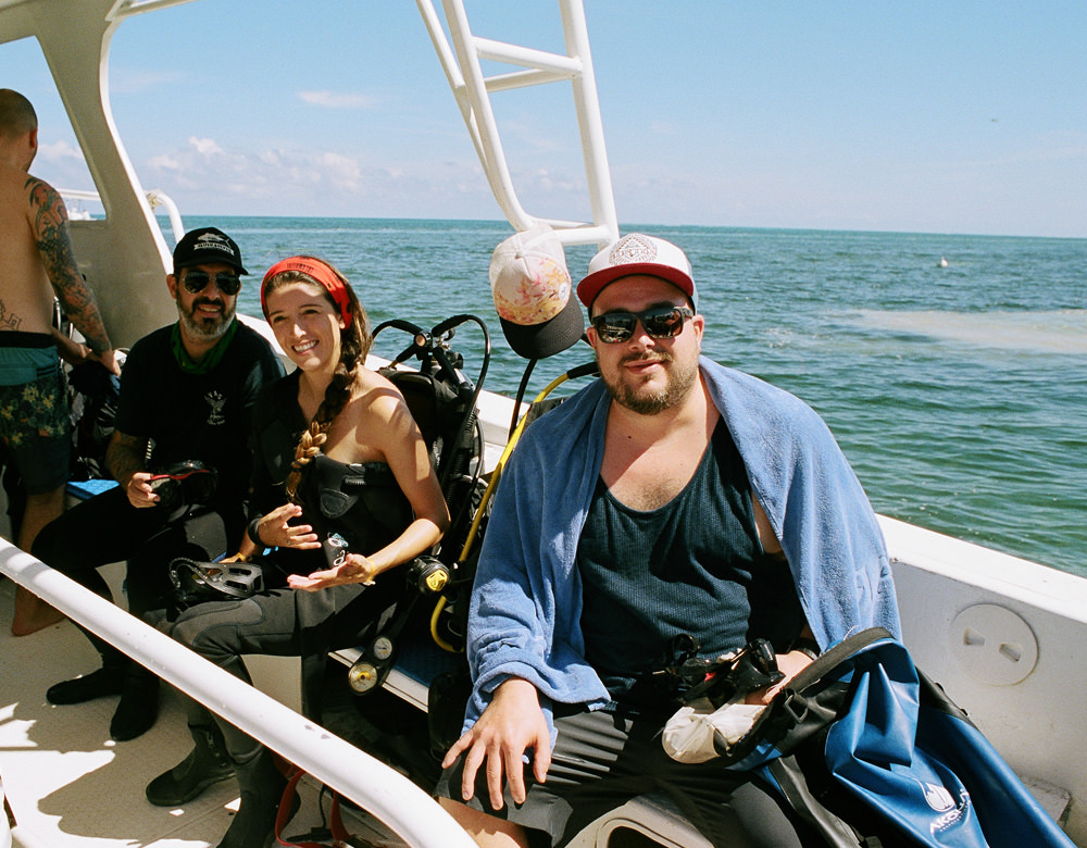 Off the coast, our boat pulls away from the shore under a full moon. A night dive has been planned. You can feel the anxiety, but oh, how lucky we are to live this experience together. We dive in and quickly descend to the bottom, slipping into darkness.