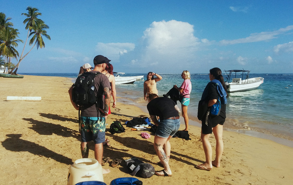 Samaná is nowhere near the island’s more renowned dive sites, so it's usually necessary to take a bus ride all the way to the southern part of the island. There can be found the elusive diving clubs. However, we need to take into account Jeff, Locomotive’s vice-president of diving operations. Upon returning from a scooter adventure in the nearby town of Las Terrenas, he unveiled a plan hatched with two local instructors. Early the next day, we are to be picked up, tossed in the back of their pick-up truck and taken to a neighbouring beach. All aboard a very fast boat, we hang on tight for an hour's ride on the sea all the way to a suitable area where we will dive twice. Be back by 4 p.m. at the latest.
